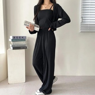 찰랑 볼레로 끈나시 와이드팬츠 크롭 쓰리 세트
