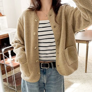 엘라운지 여성 뽀글이 플리스 베이직 가디건