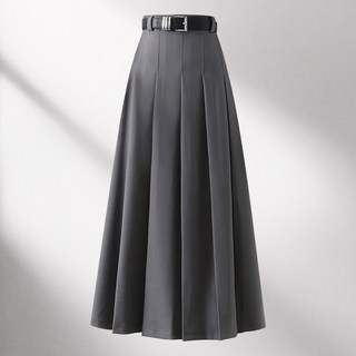 벨트SET 핀턱 여성 무지 정장 A라인 플레어 플리츠 핀턱 주름 롱 스커트