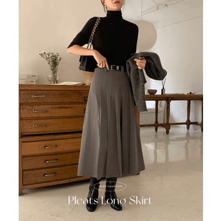 데일리앤 비네트 밴딩 플리츠 모직 롱 스커트