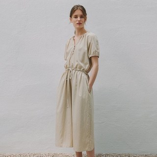 라미네즈 래글런 골드버튼 롱 드레스 - 베이지