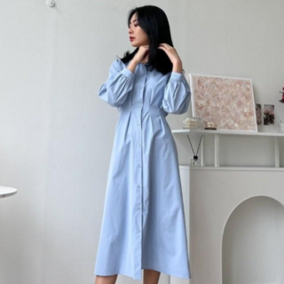 투디 핀턱 퍼프 셔츠원피스 롱원피스