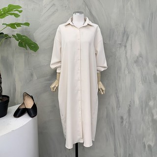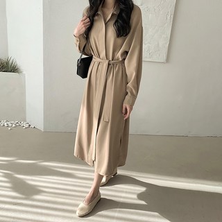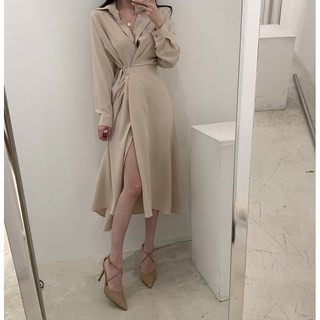 cammello 페미닌 옆트임 롱 셔츠 원피스