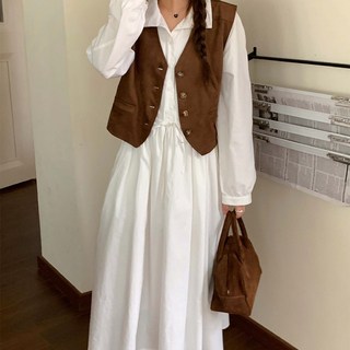 POMTOR 프렌치 고급 셔츠 여성 원피스 롱 원피스 고급스러운 화이트 원피스