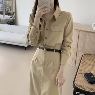 [행복여] 앤드 루즈핏 셔츠 카라 벨트 세트 원피스