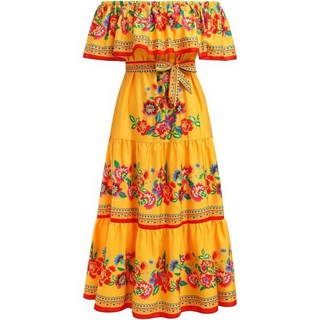 여성 멕시칸 드레스 여름 플라워 프린트 전통 민족 의상 오프숄더 비치 홀리데이 롱 맥시 1287154