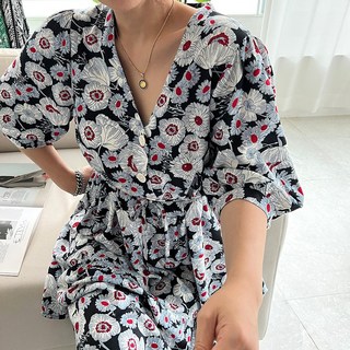 쉬블림로브 여성 데이지 쉬폰 플라워 프린팅 나들이 피크닉 원피스 GW1425