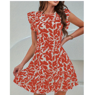 2025년 패션 패스티벌 우아한 플라워 프린트 데일리 캐쥬얼 원피스 플레어 프릴 여성스러운 OPS