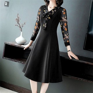 besteffie 인기폭발 여성용 플라워 프린트 패치워크 디자인 긴팔 롱 원피스 반폴라 드레스 모던 패션 K18