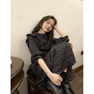 데일리스텔라 - 빈티지 스타일 플라워 프린트 드레스 쉬폰 원피스