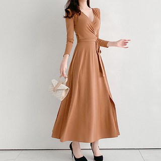 아이엠몽 여성 브이넥 랩 롱 원피스