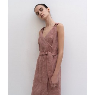 RE RHEE RING STRAP LINEN WRAP DRESS