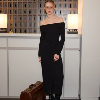 살롱드욘 여성용 오프숄더 롱 랩 드레스