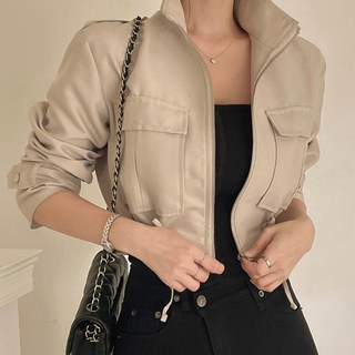 비비에모 여성용 집업 하이넥 투포켓 크롭핏 자켓 07252