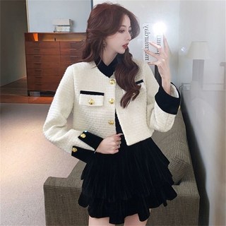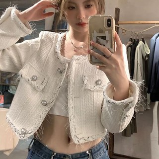 besteffie 여성 트위드 자켓 초가을 캐주얼 달콤한 디자인 진주 버튼 슬림핏 패션 긴팔 하객룩 크롭 자켓 V15