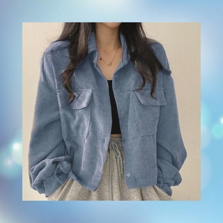 여성 코듀로이 자켓 봄가을 숏 스트링 단추 크롭 하이넥 외출