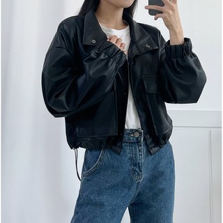 쪼예 가을무드 카라넥 세미크롭 스웨이드 긴팔 레더 자켓