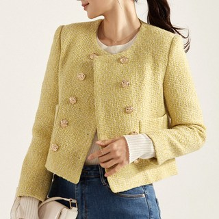 besteffie 여성 트위드 자켓 라운드넥 캐주얼 데일리 기품있는 하객룩 골드 버튼 슬림핏 데일리 크롭 자켓 V15