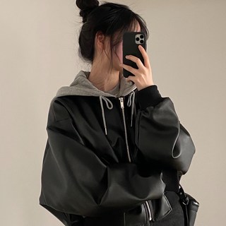 빈티지 크롭 가죽자켓 여성 후드자켓 가죽 점퍼