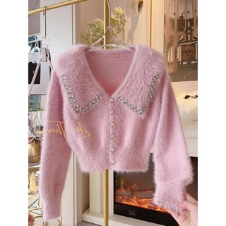 여성 스웨터 가을 겨울 루즈핏 크롭 빅카라 재킷