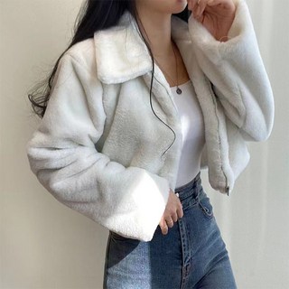 라라홀리 베이비 밍크 카라 크롭 집업 퍼 자켓
