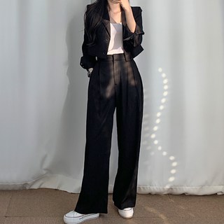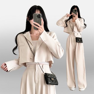 스트릿제이 투피스 간절기 크롭 자켓 밴딩 와이드 슬렉스 정장 하이라이즈 세트