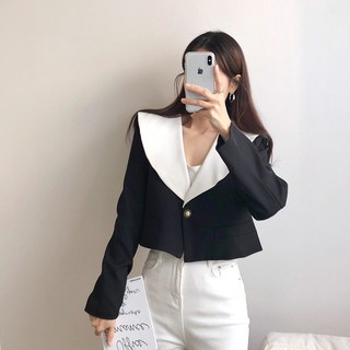 요시아나 [당일발송] 보드앵 배색 둥근 세일러 카라넥 블랙 숏 자켓