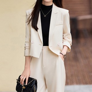 여성용 데일리 베이직 캐주얼 긴팔 숏 더블버튼 정장 자켓