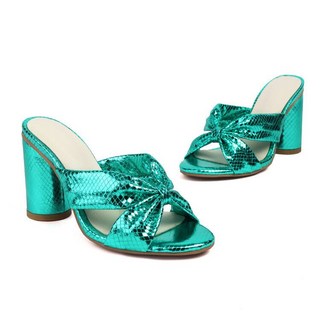 오픈토 글리터 리본 크로스 스트랩 블록 힐 슬리터 샌들 여자구두 키작은여자 8.5cm