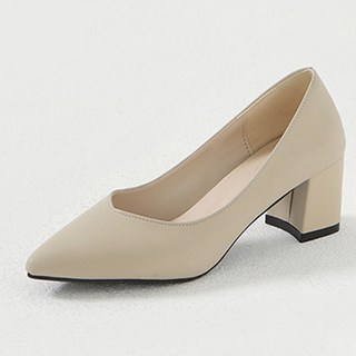 슈뿐 발편한 베이직 뾰족코 절개 라인 미들 힐 구두(6cm)