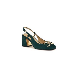 나인웨스트 캐스트 여성 블록 힐 스퀘어 토 펌프스 다크 그린 스웨이드 구두