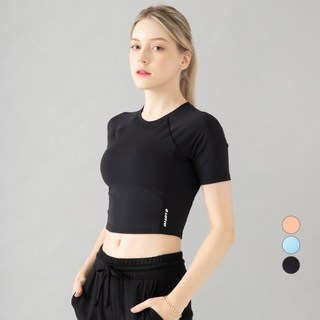 로또 여성용 쿨링 반팔 나일론 스트레치 브라패드 크롭탑