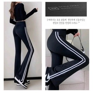 블랙 사이드 스트라이프 부츠컷 하이웨이스트 복부 보정 요가 팬츠 실외 팬츠 레깅스