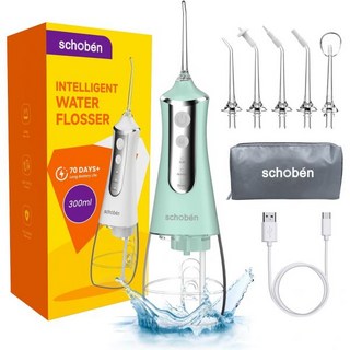 무선 물 치실 300ML 탱크 4 모드 5 교체 가능한 팁이 있는 휴대용 및 충전식 구강 관개기 여행용 가정용 방수 강력 배터리화이트블랙, Light Green