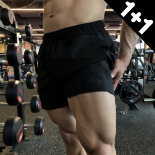 1+1 커스터스 남자 반바지 트레이닝 헬스 아웃도어 운동 스포츠 파자마 2장세트