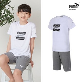 푸마 [푸마] 주니어 남아 멀티웨어 상하의 화이트+멜란지그레이 세트