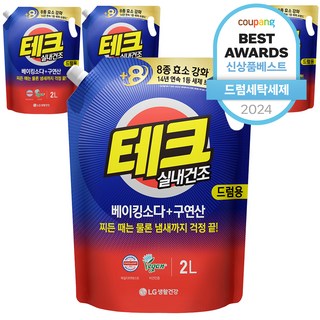 테크 베이킹소다 플러스 구연산 실내건조 액체세제 드럼용 리필, 2L, 4개