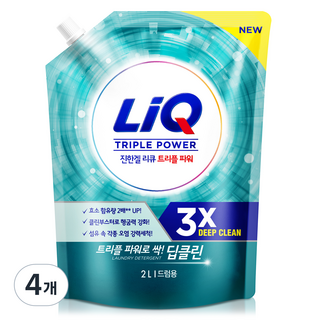 리큐 진한겔 딥클린 트리플파워 드럼용 액상세제 리필, 2L, 4개