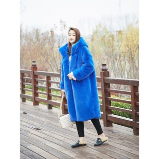 NEW 봄 재생 친환경-여성캐시미어 100/루즈핏/빅사이즈/코트 후드 캐시미어롱코트 양털코트 핸드메이드코트 명품 밍크코트