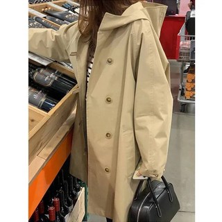 트렌치 코트 여성 봄 가을 카키색 자켓 미디 후드가 달린