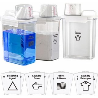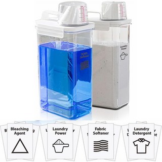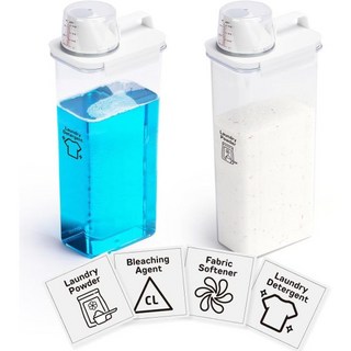 세탁 세제 디스펜서2 팩 탈착식 라벨 4개가 부착된 37온스 디스펜서 세탁실 정리 및 보관용 비누 BPA 프리 PET 플라스틱 클리어, 98 oz