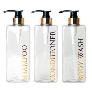 모든집 호텔 욕실 디스펜서 샴푸통 500ml+방수라벨 3구 세트, 1세트, 욕실세트_500ml(투명용기+백색펌프+한글3종)