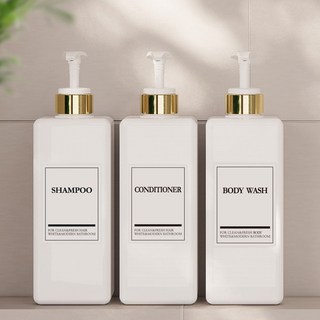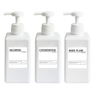 뉴앤룩 욕실 디스펜서 일반형 450ml x 3p + A 라벨 스티커 샴푸 + 스티커 컨디셔너 + 스티커 바디워시 세트, 화이트, 1세트