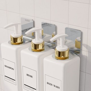 벽걸이 샴푸 홀더: 벽에 부착되는 샴푸 홀더로, 철사나 플라스틱으로 만들어질 수 있습니다. 보통 샴푸 병을 걸 수 있는 슬롯이 있고, 몇 개의 샴푸 병을 동시에 보관할 수 있도록 설계되어 있습니다.