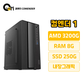 컴엔더 게이밍 조립컴퓨터 로스트아크 롤 배그 검은신화오공 워드사무용 데스크탑PC, 블랙, 8GB, 250GB, Free DOS, 컴엔더 01