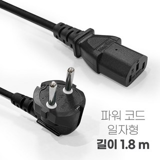 이츠굿텐 AC CORD 컴퓨터 파워코드 흑색 220V 10A 0.75SQ 1M-15M 일자형 ㄱ자형 꺾임형 국산 전원케이블, 1.8m, 1개