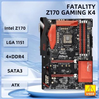 ASRock Fatal1ty 게임용 K4 마더보드 인텔 Z170 LGA 1151 DDR4 64GB ATX 인텔 코어 i5-6500 i3-7100 G4400 CPU 지원, 1개