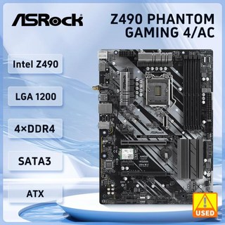 ASRock Z490 마더보드 Z490 팬텀 게이밍 4/ac 마더보드 LGA 1200 DDR4 128GB PCI-E 3.0 M.2 USB3.2 ATX, 한개옵션1, 한개옵션0