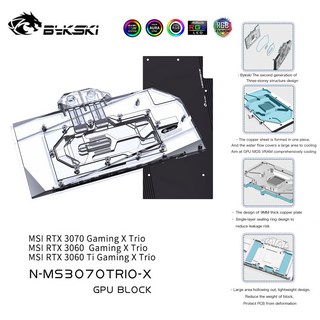 Bykski GPU Bolck MSI RTX3070 3060Ti 3060 GAMING X TRIO 비디오 카드 수냉 풀 커버 라디에이터 N MS3070TRIO, RBW(5v 3pin), 1개