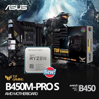 아수스 TUF 게이밍 B450M PRO S 컴퓨터 메인보드용 데스크톱 메인보드 키트 AMD 라이젠 5 3600 R5 CPU 컴퓨터용 핏, 아수스 TUF 게이밍 B450M PRO S 컴퓨터 메인, 1개